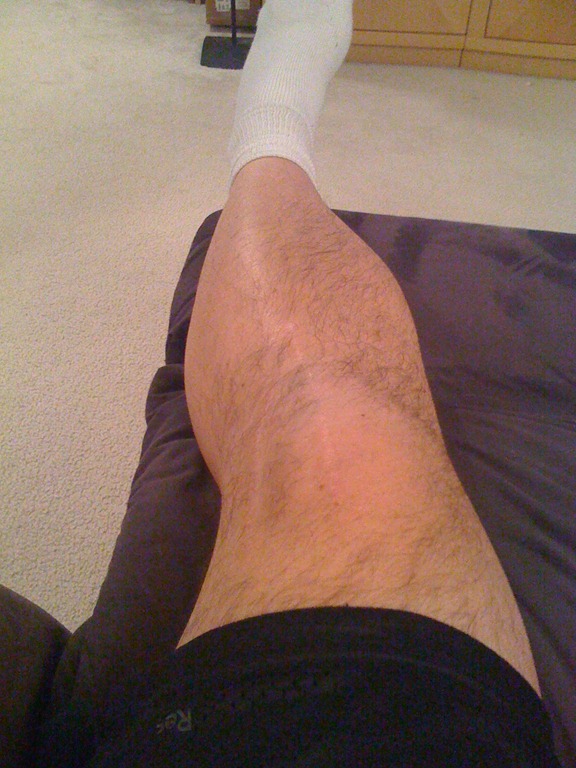 The ultrasound on my leg was not able to show any blood clots – hurray! But what they did find was a large hematoma – a pool of blood – between the muscle layers in my calf. This is likely from internal bleeding after the surgery that made it’s way there via pressure from swelling. Another possible cause is a tear in the calf. In fact I talked with the on-call doc from my surgeon’s group today and he said that we’re effectively battling two different injuries now: knee and calf.